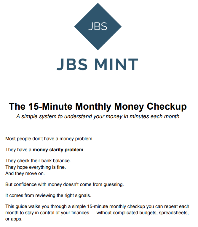Download the simple monthly checkup that helps you see whether your finances are moving forward — without budgeting apps, spreadsheets, or complicated systems.